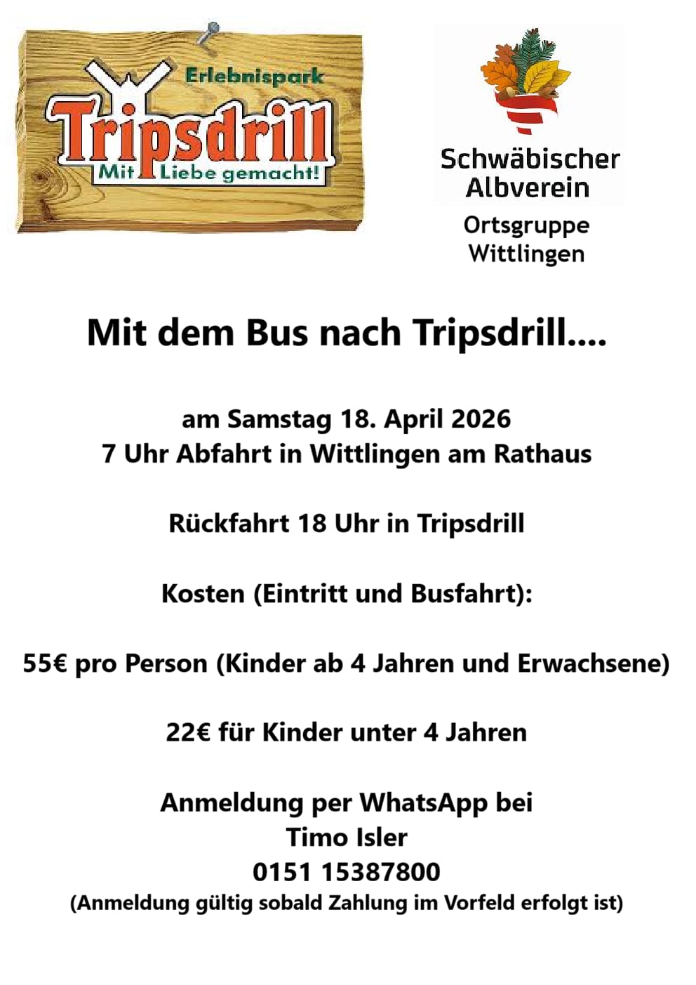 Ausflug nach Tripsdrill Sa., 18.04.2026, Uhrzeit: 08:00 - 20:00 iCalendar Mit dem Laden der Karte akzeptieren Sie die Datenschutzerklärung von Google.Mehr erfahren Karte laden Google Maps immer entsperren zur Übersicht